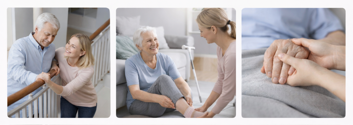 Máme osvědčení pro manipulaci s pacientem a víme, jak pomáhat tak, aby nedocházelo k úrazům – ani u seniora, ani u pečující osoby. Důraz klademe na bezpečnost, prevenci pádů a zachování co největší samostatnosti.